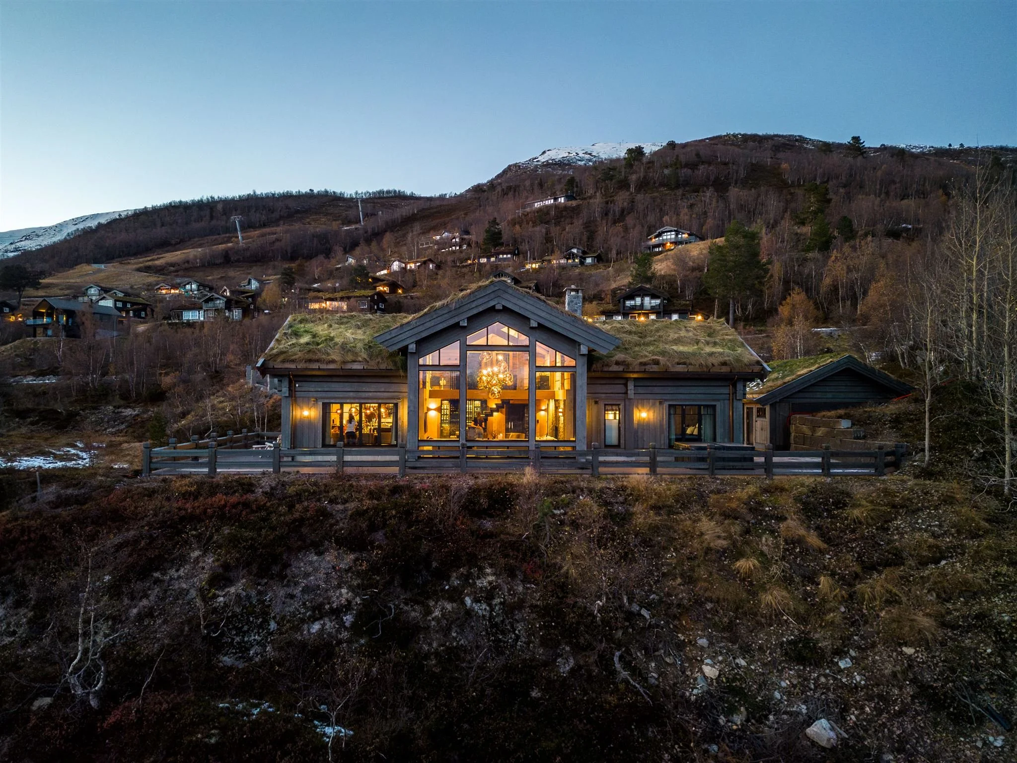 En lekker, påkostet og særegen stavlafthytte fra LHM over to plan med seks soverom, to stuer, fire bad + WC, sauna og en romslig kjøkken-/stueløsning med peis, store vindusflater og god takhøyde. Selges fullt møblert!*